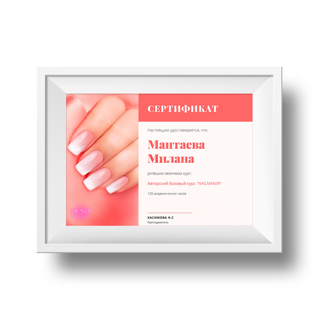 После обучения - ты получаешь сертификат который подтверждает твои профессиональные навыки мастера.